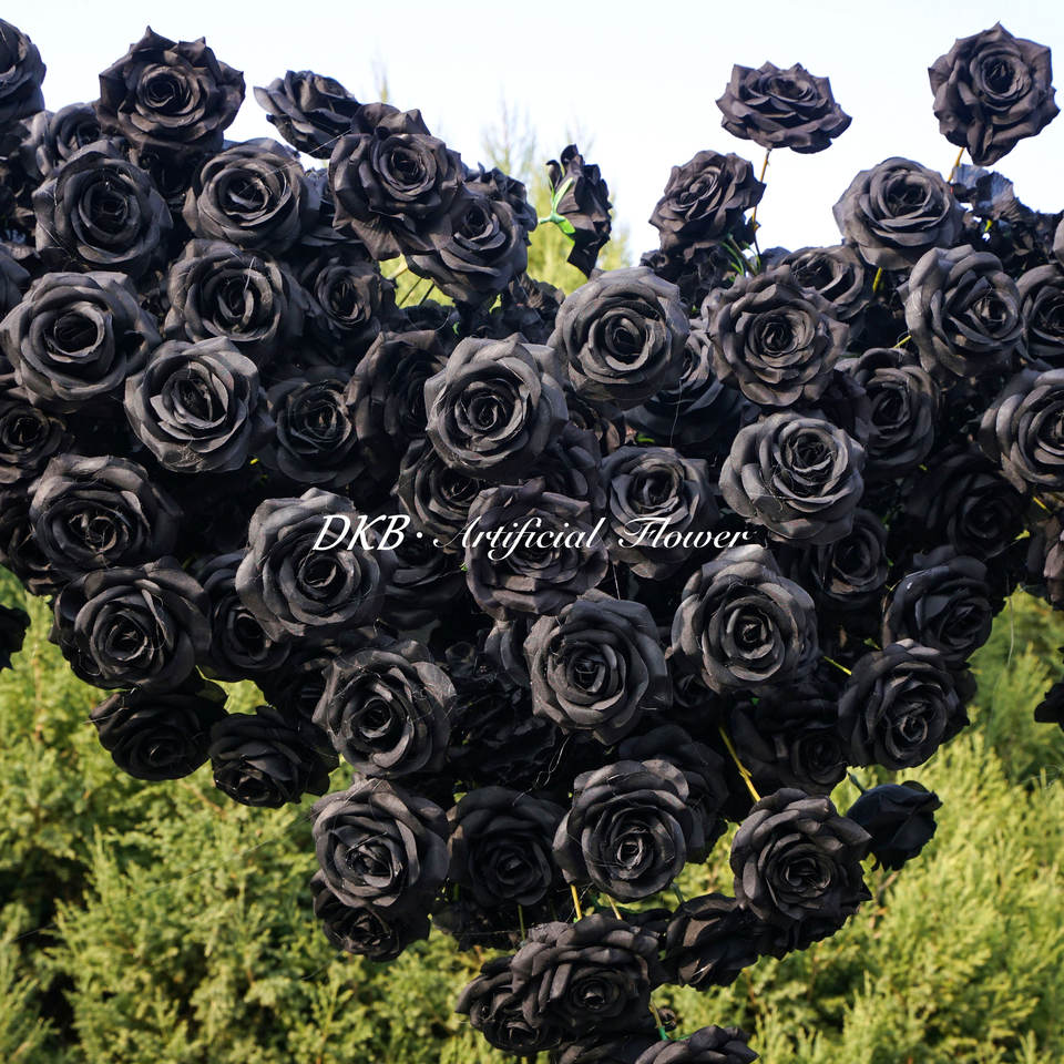 ดอกไม้ประดิษฐ์ตกแต่งซุ้มรูปหัวใจดอกกุหลาบสีดำประดิษฐ์ตกแต่งซุ้มดอกไม้สำหรับงานแต่งงาน