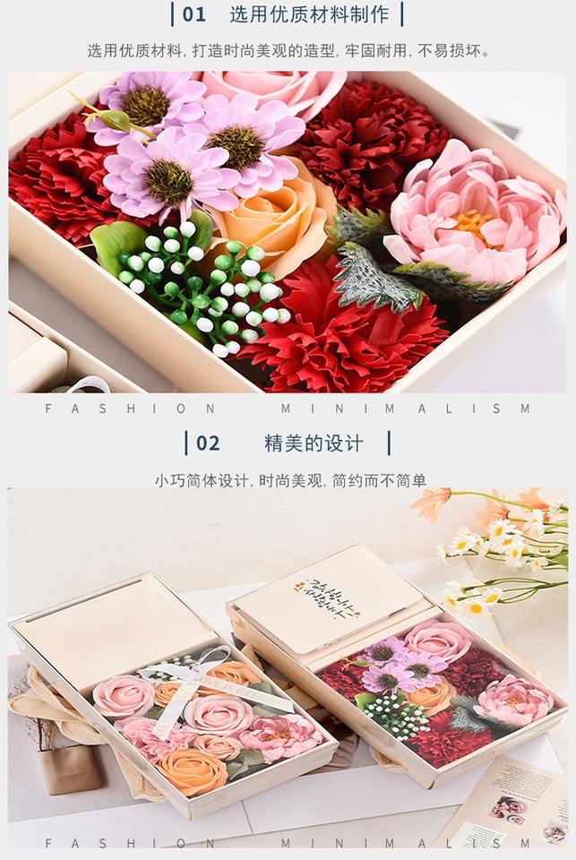 กล่องของขวัญดอกไม้ประดิษฐ์ ช่อดอกไม้กุหลาบและดอกโบตั๋น ของขวัญสุดโรแมนติกสำหรับวันวาเลนไทน์ งานแต่งงาน งานครบรอบ และงานปาร์ตี้