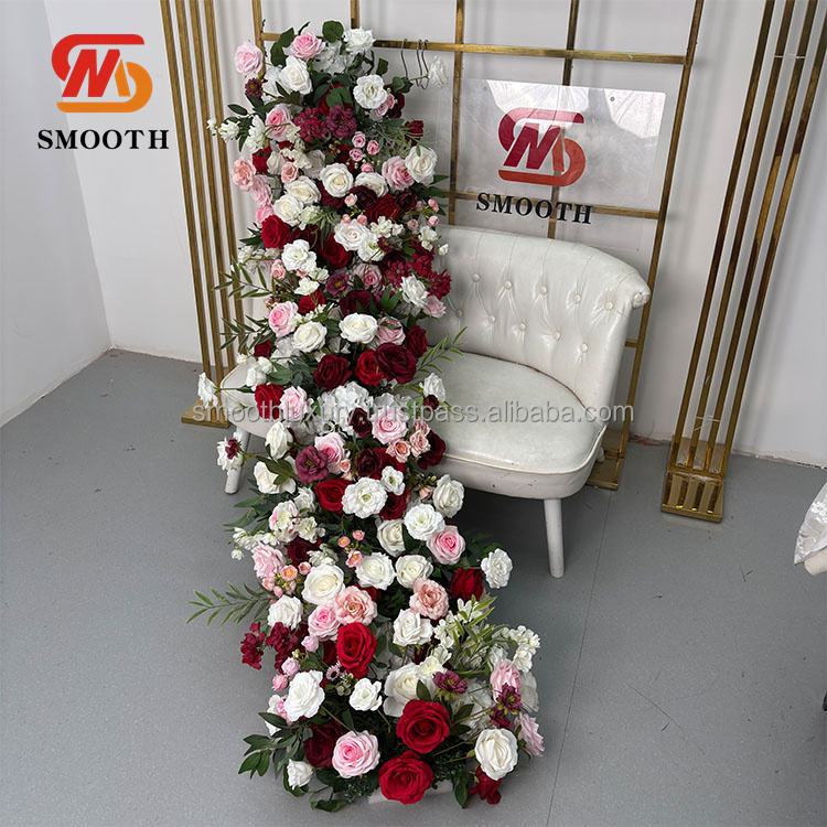 ดอกไม้ประดิษฐ์สีขาวดอกกุหลาบสีชมพูดอกไม้วิ่งกลางทางเดินประดับโต๊ะเต่งงานเต่งงานเต่งงาน
