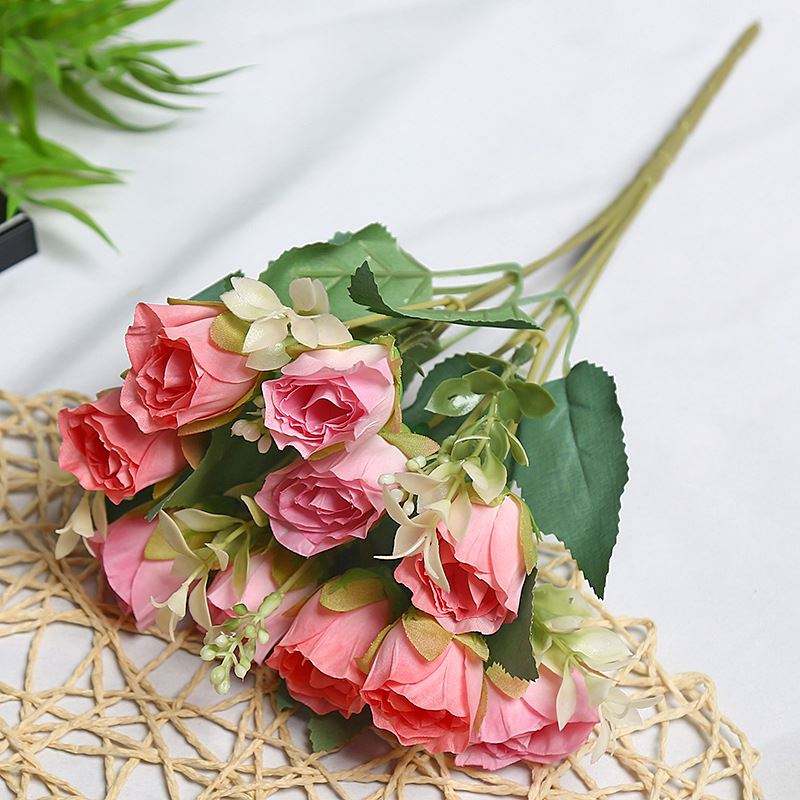 ดอกไม้ประดิษฐ์ดอกตูมเล็กดอกกุหลาบประดิษฐ์โต๊ะรับประทานอาหารดอกไม้ประดับบ้านวัสดุทำด้วยมือแบบทำมือ