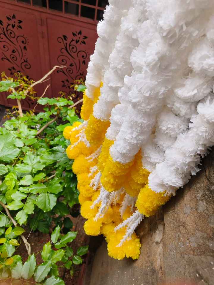 พวงดอกดาวเรืองปลอมสำหรับตกแต่งบ้านและฉากหลังติดเพดานสำหรับทุกโอกาส