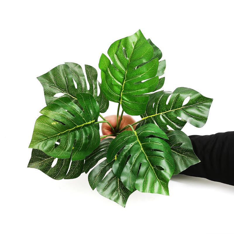 ใบไม้สีเขียวประดิษฐ์พืชผ้าไหมสีเขียวเหมือนจริงช่อดอกไม้ปลอมสีเขียวบอนไซสำหรับตกแต่ง