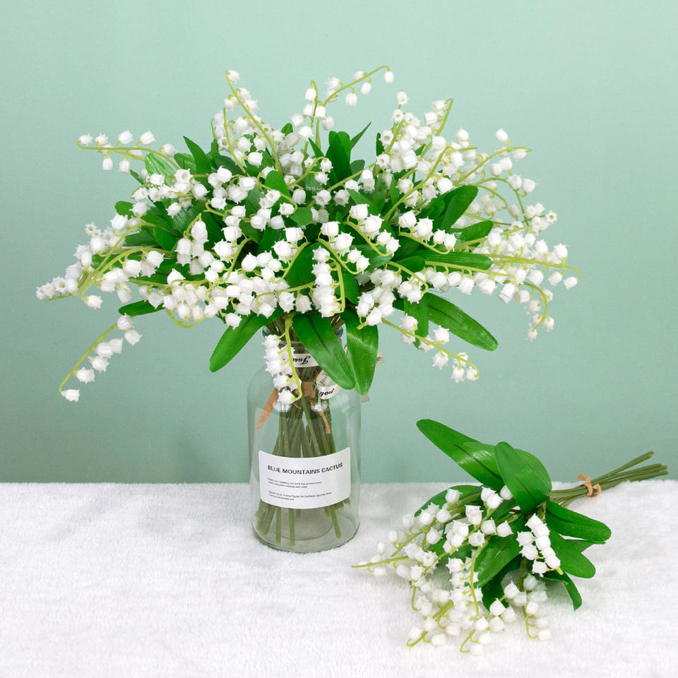 ดอกลิลลี่ออฟเดอะแวลลีย์ประดิษฐ์ สีขาว ทำจากพลาสติกและผ้าไหม คุณภาพสูง เหมาะสำหรับตกแต่งงานแต่งงานและบ้าน