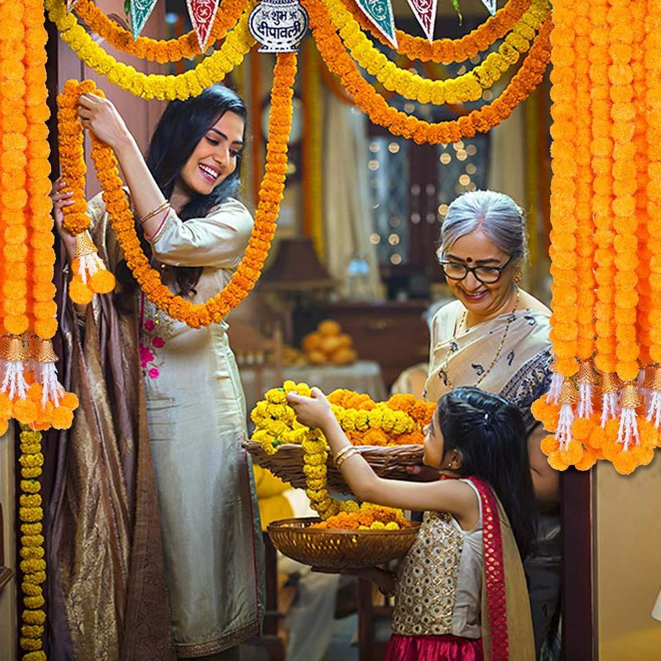 ดอกดาวเรืองเทียมมีขนนุ่มและพวงดอกไม้ tuberos คลัสเตอร์สำหรับเทศกาล Pooja งานแต่งงานของตกแต่งบ้านที่ขึ้น