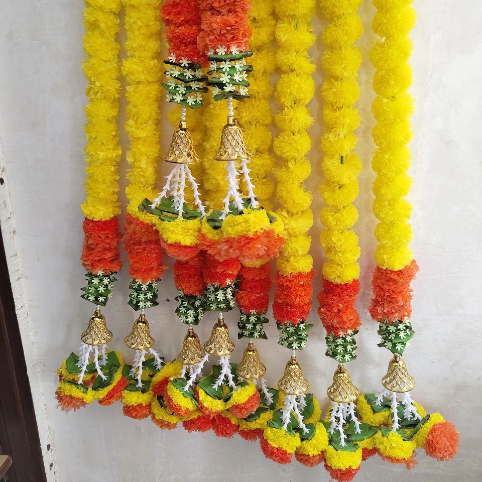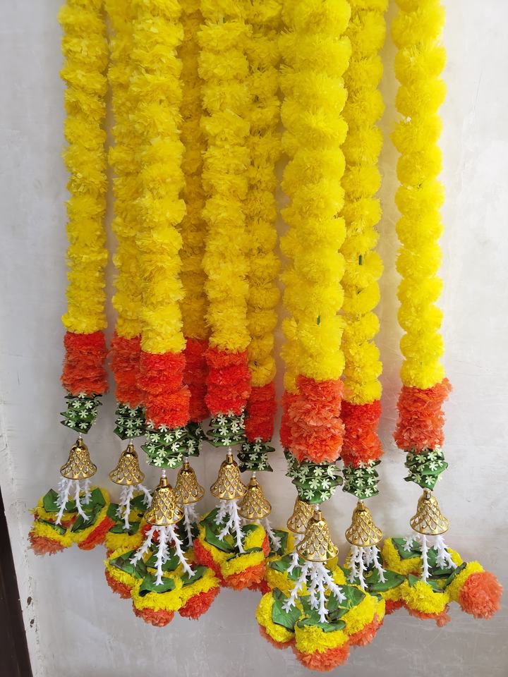 ชื่อผลิตภัณฑ์:มาลัยดอกไม้ประดิษฐ์ดอกดาวเรืองพร้อมกระดิ่ง