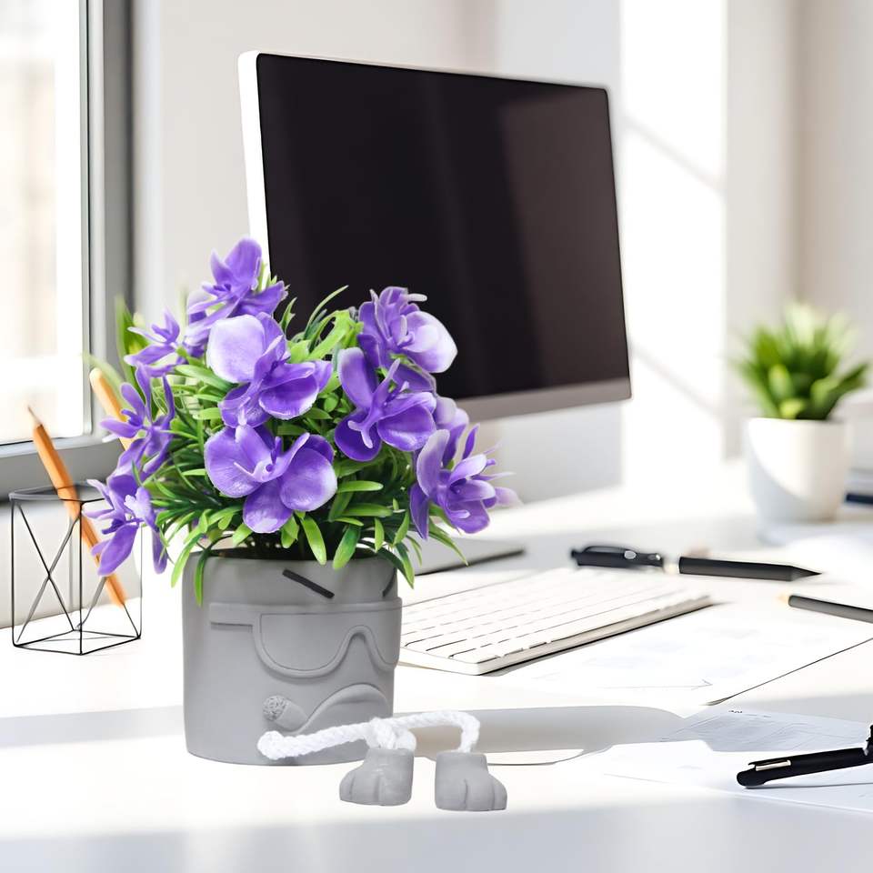 กระถางปูนและต้นไม้ประดิษฐ์พลาสติก