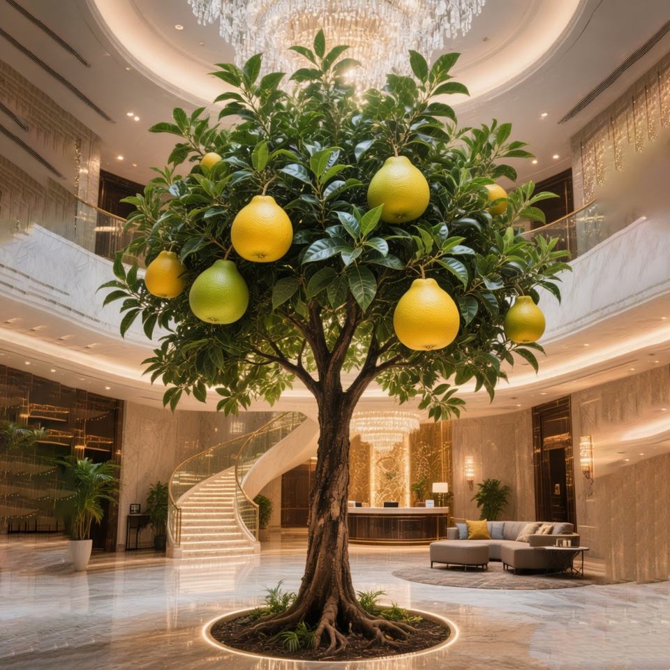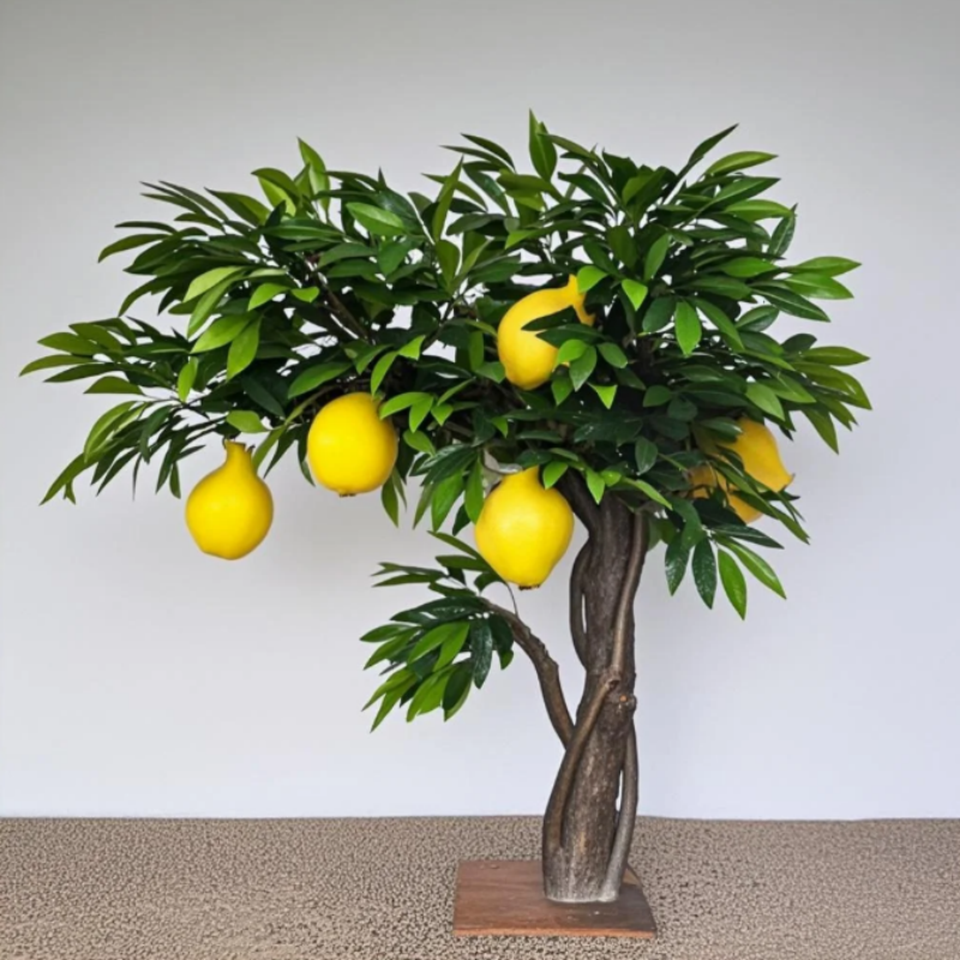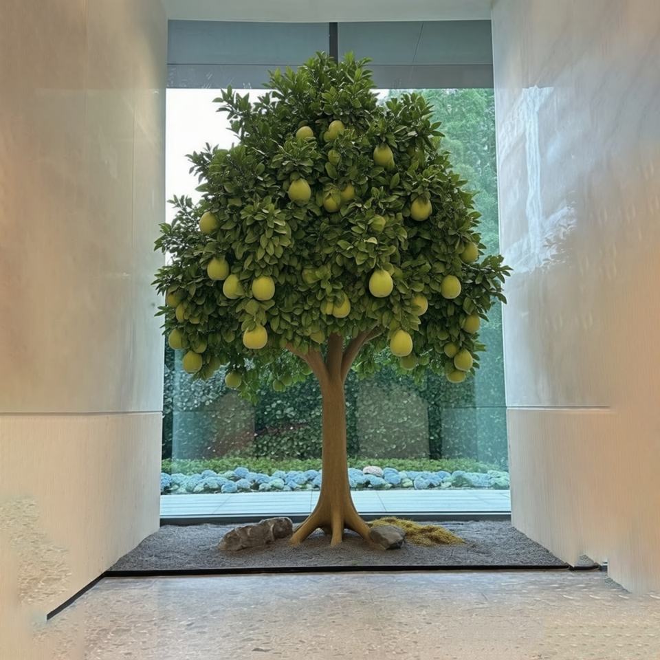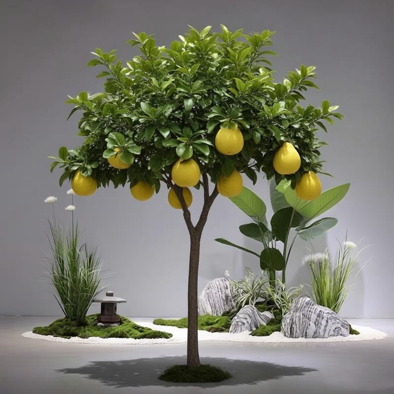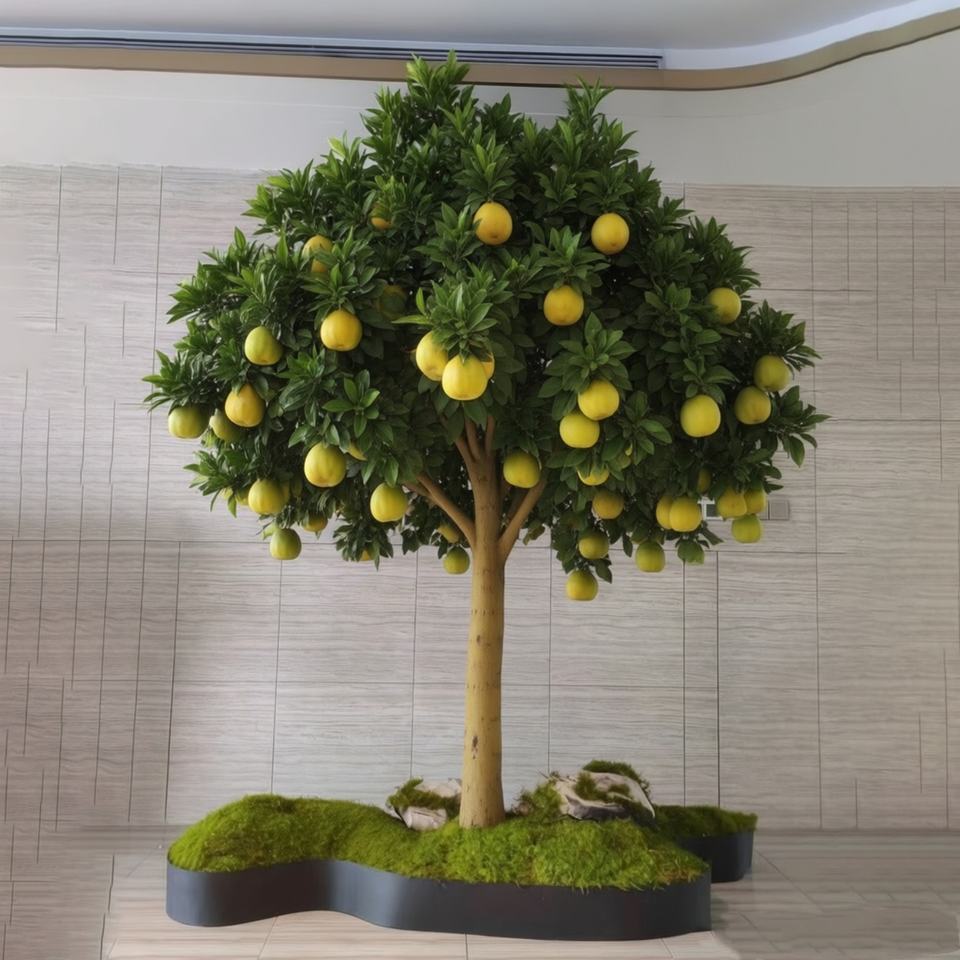 ต้นส้มโอเทียมสีเขียวเหมือนจริงผลไม้สีเหลืองใบไม้เขียวชอุ่มสำหรับตกแต่งสวนในบ้าน