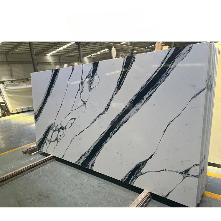 หินควอตซ์เทียมสีขาวแพนด้าแผ่นใหญ่ ดีไซน์ทันสมัย พร้อมแบบจำลอง 3 มิติสำหรับผนังตกแต่ง