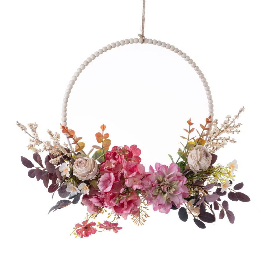 พวงดอกไม้ประดิษฐ์รูปดอกดาเลีย กุหลาบ และไฮเดรนเยีย ครึ่งดอก พร้อมใบไม้ประดับ สำหรับประตูหน้า ผนัง งานแต่งงาน วันขอบคุณพระเจ้า และงานรับปริญญา