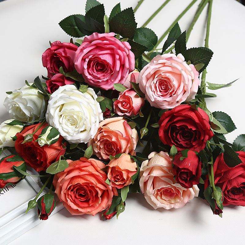 ดอกกุหลาบประดิษฐ์ทำจากผ้าไหมดอกไม้ประดิษฐ์สำหรับงานแต่งงานบ้านตกแต่งอุปกรณ์เสริมการรับรู้ขั้นสูง