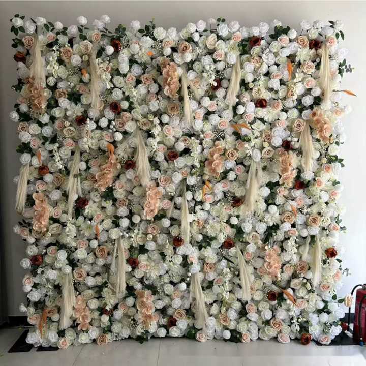 ฉากหลังดอกไม้ประดิษฐ์ 3 มิติ ขนาด 8x8 ฟุต สำหรับตกแต่งงานแต่งงาน คริสต์มาส งานรับปริญญา และงานเฉลิมฉลองปีใหม่จีน