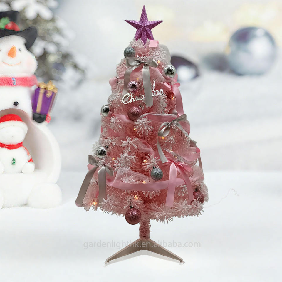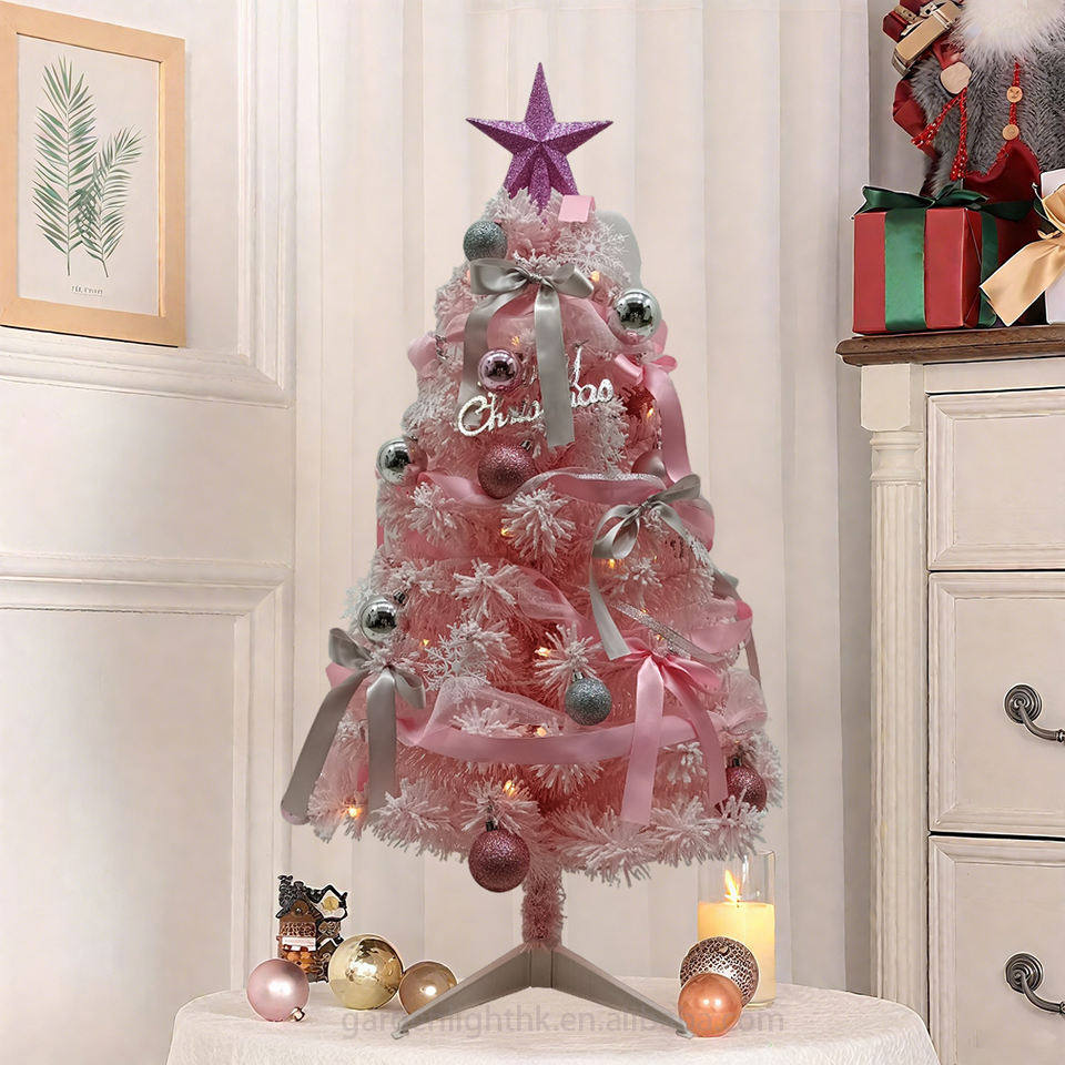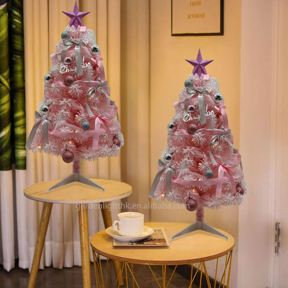 High Quality Eco-Friendly Artificial Snow Covered 3FT Pink PVC Christmas Tree Balls Top Star Warm White LED Lights for Home
