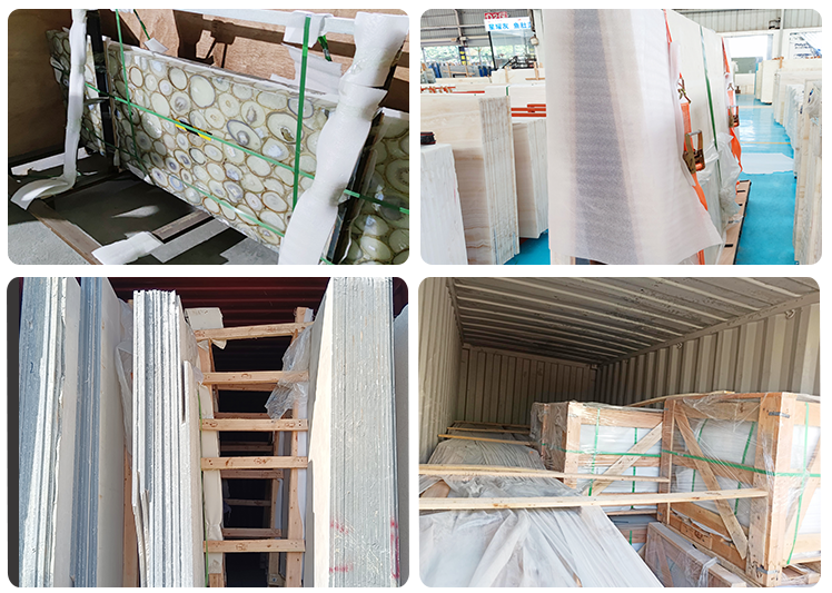2) Tile: foam inside + strong seaworthy wooden crates with reinforced straps outside