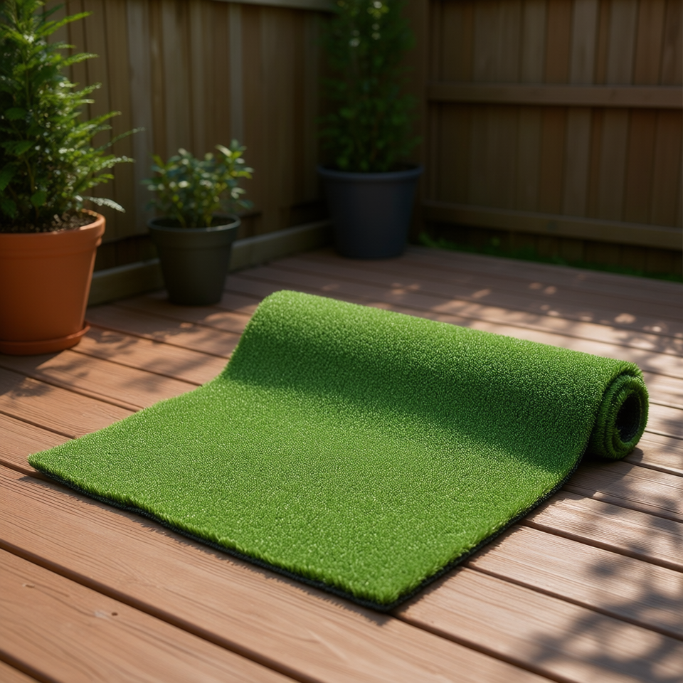 แผ่นหญ้าเทียม 3.3 ฟุต x 16.5 ฟุต สีเขียว มีรูระบายน้ำ ด้านหลังเป็นยาง ใช้ได้ทั้งภายในและภายนอก เหมาะสำหรับสัตว์เลี้ยงและลานบ้าน