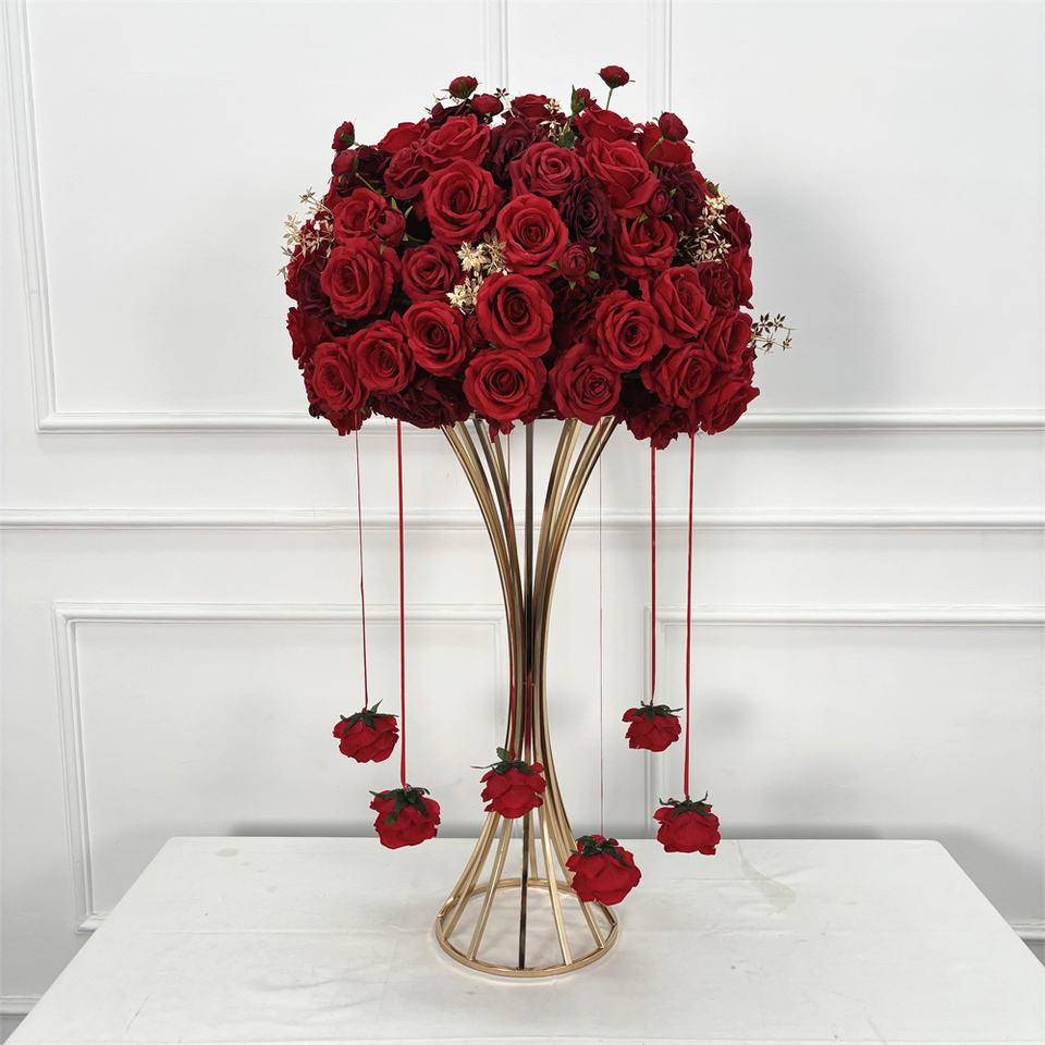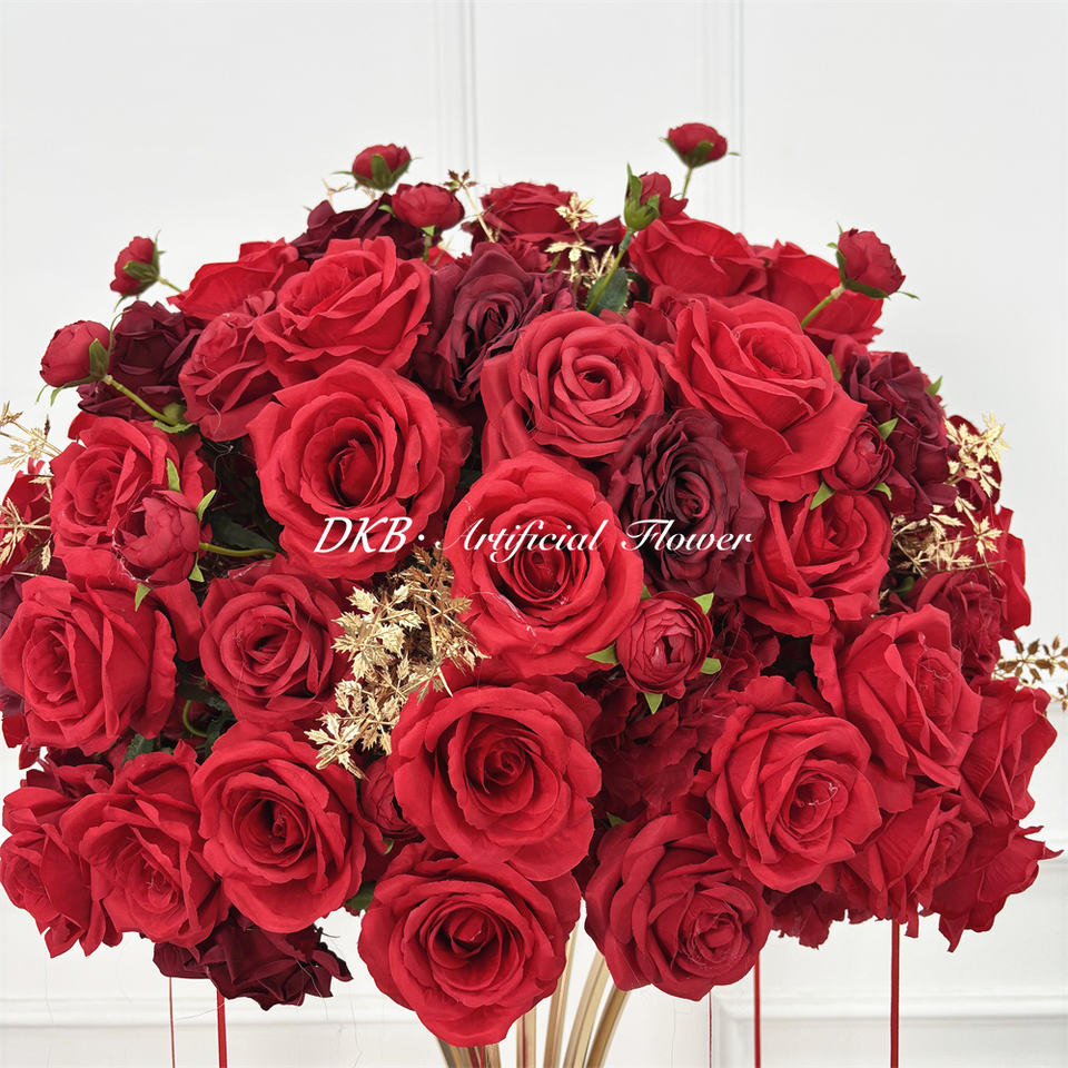 ดอกไม้ประดิษฐ์สำหรับตกแต่งงานแต่งงาน ลูกบอลดอกไม้ประดับงานแต่งงาน ลูกบอลดอกไม้ผ้าไหมสีแดง