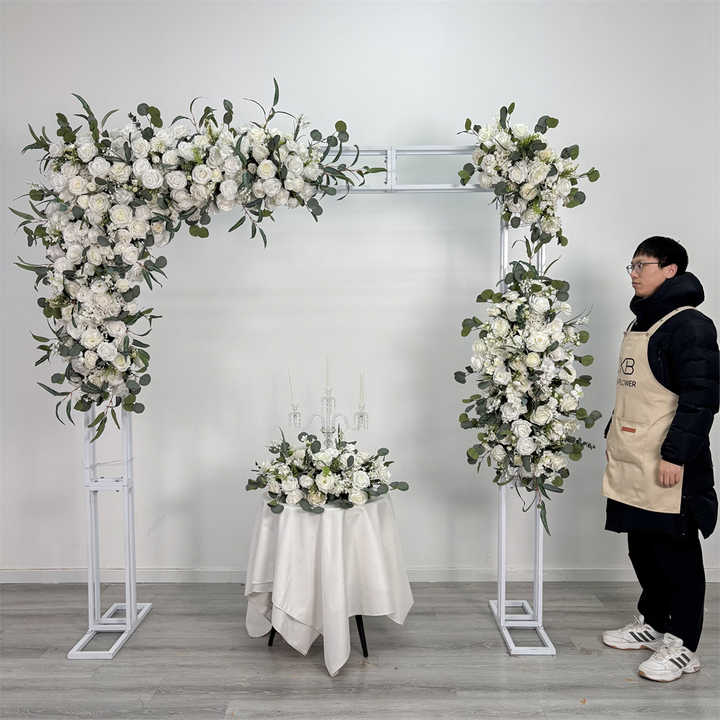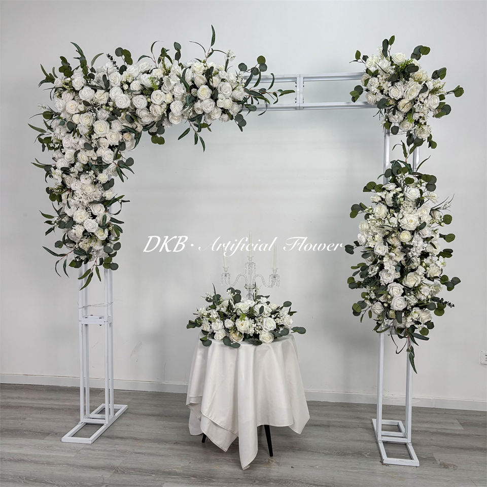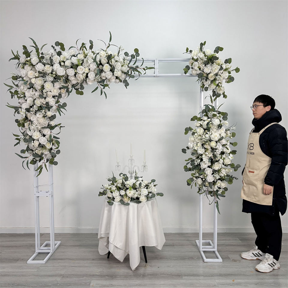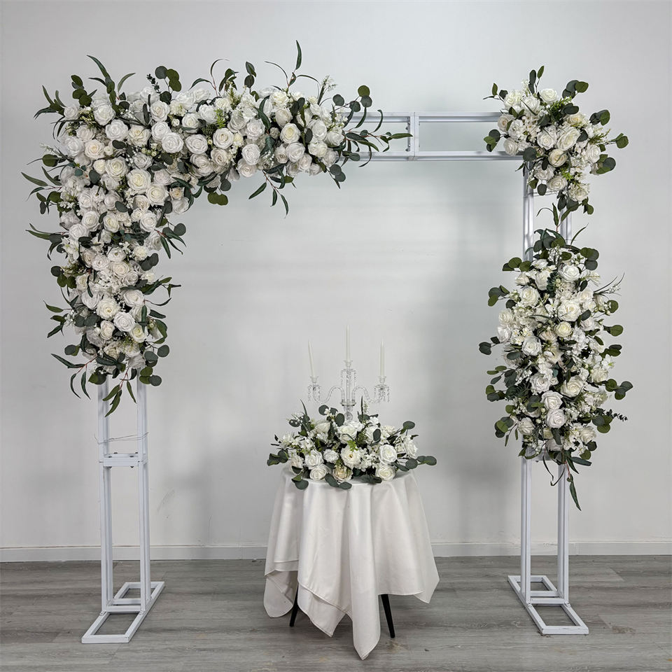 Artificial silk white rose Square Flower Arch Wedding Backdrop events stage Flower Background Decoration