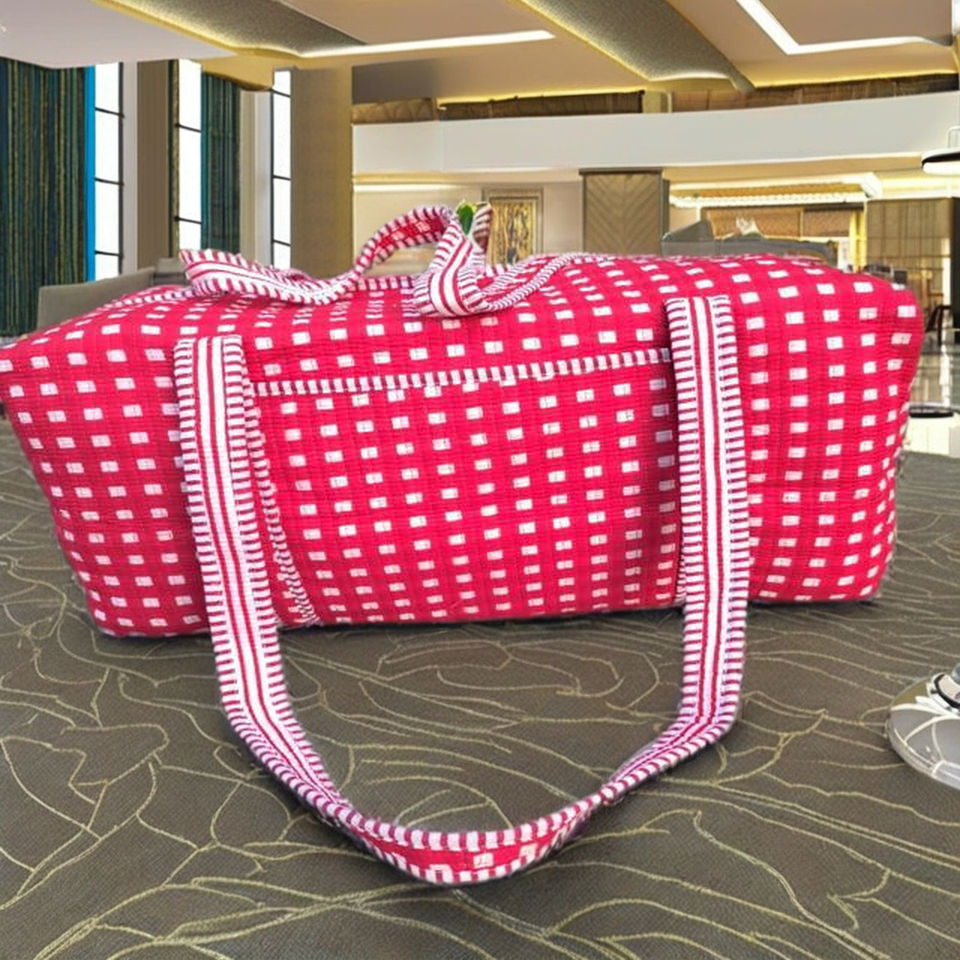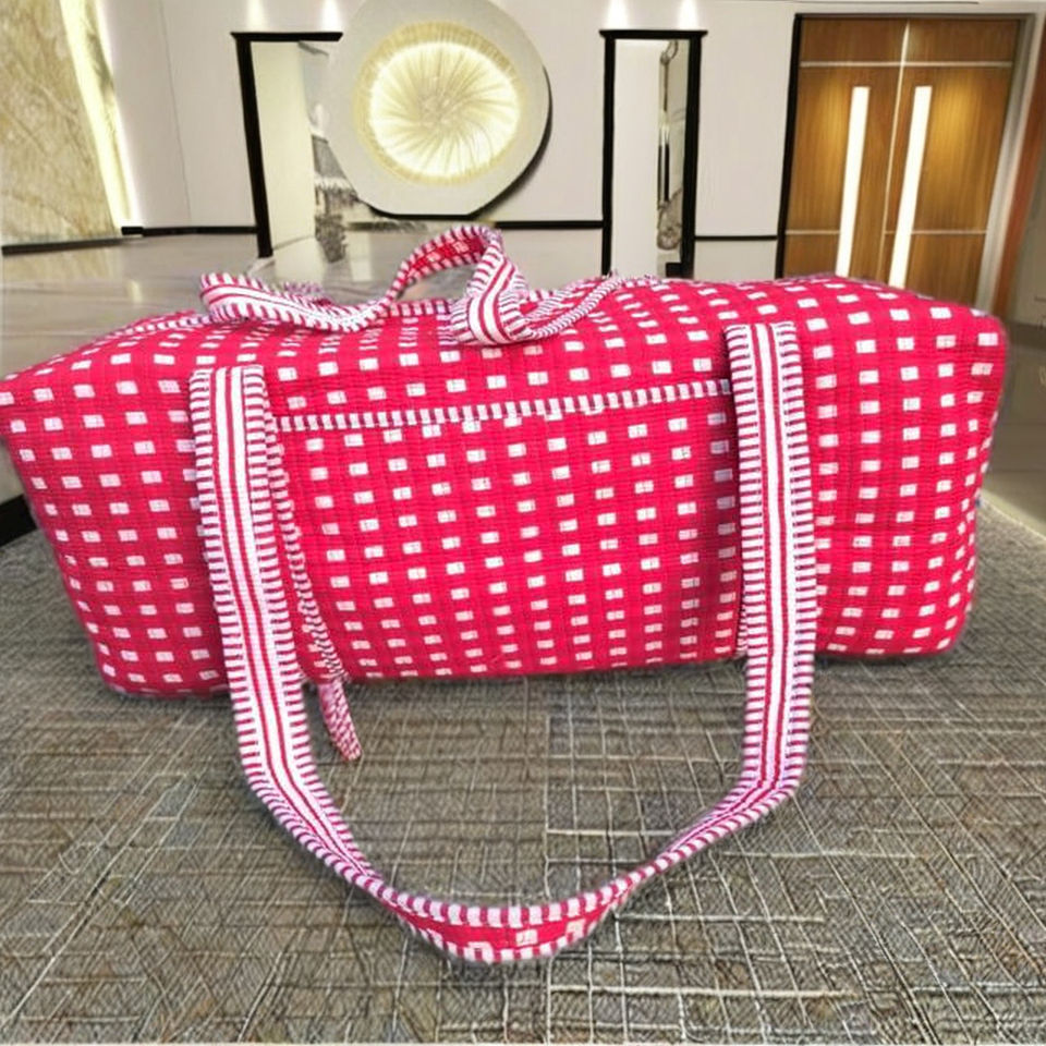 กระเป๋าผ้าฝ้ายพิมพ์ลายบล็อกแบบดัฟเฟิล ทำมือ น้ำหนักเบา ทนทาน ดีไซน์กว้างขวาง หรูหรา เป็นมิตรกับสิ่งแวดล้อม ขนาด 20 นิ้ว สำหรับวันหยุดสุดสัปดาห์