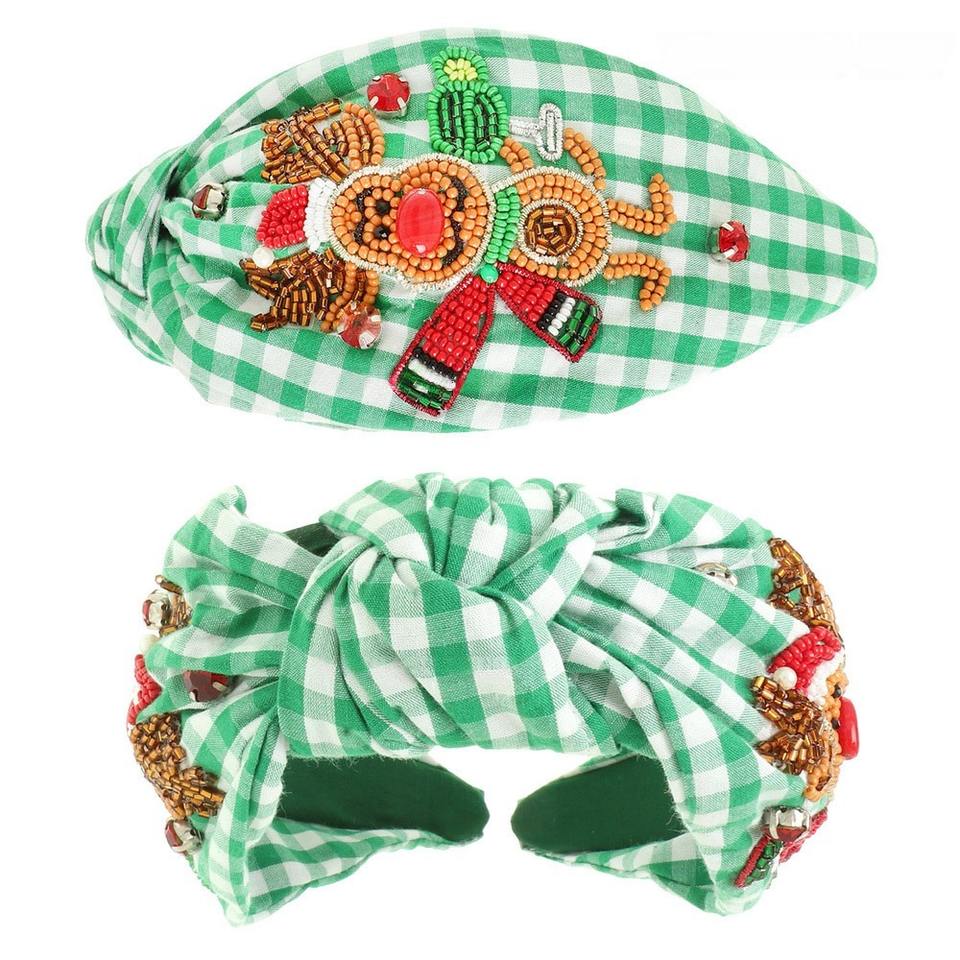ที่คาดผมงานฝีมือสำหรับเทศกาล ประดับด้วยลายปักสไตล์ซานต้า อุปกรณ์ตกแต่งศีรษะสีเขียวสุดเก๋สำหรับผู้หญิงในช่วงวันหยุด