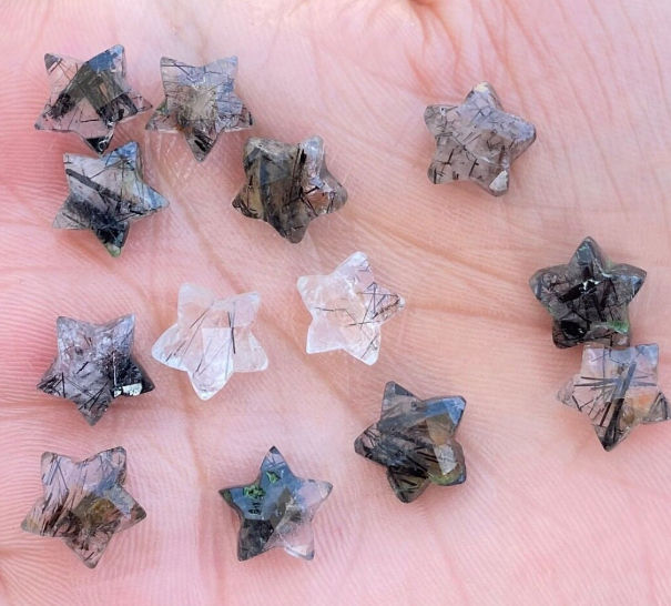 การแกะสลักรูปดาวด้วยแร่รูไทล์สีดำธรรมชาติ | คริสตัลรูปดาวแกะสลักด้วยมือ | อัญมณีบำบัดตกแต่ง ขายส่ง อัญมณีแบบไม่ติดตั้ง