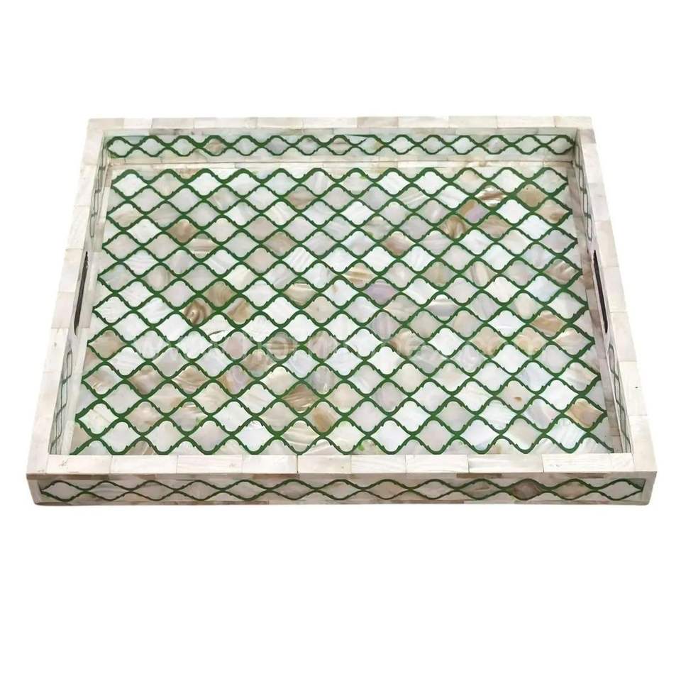 ถาดเปลือกหอยมุกงานฝีมือช่างฝีมือที่มีพื้นผิวสัมผัสที่เป็นเอกลักษณ์สำหรับการตกแต่งและใช้งานในบ้านอย่างมีประโยชน์
