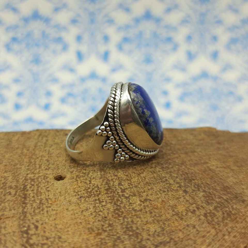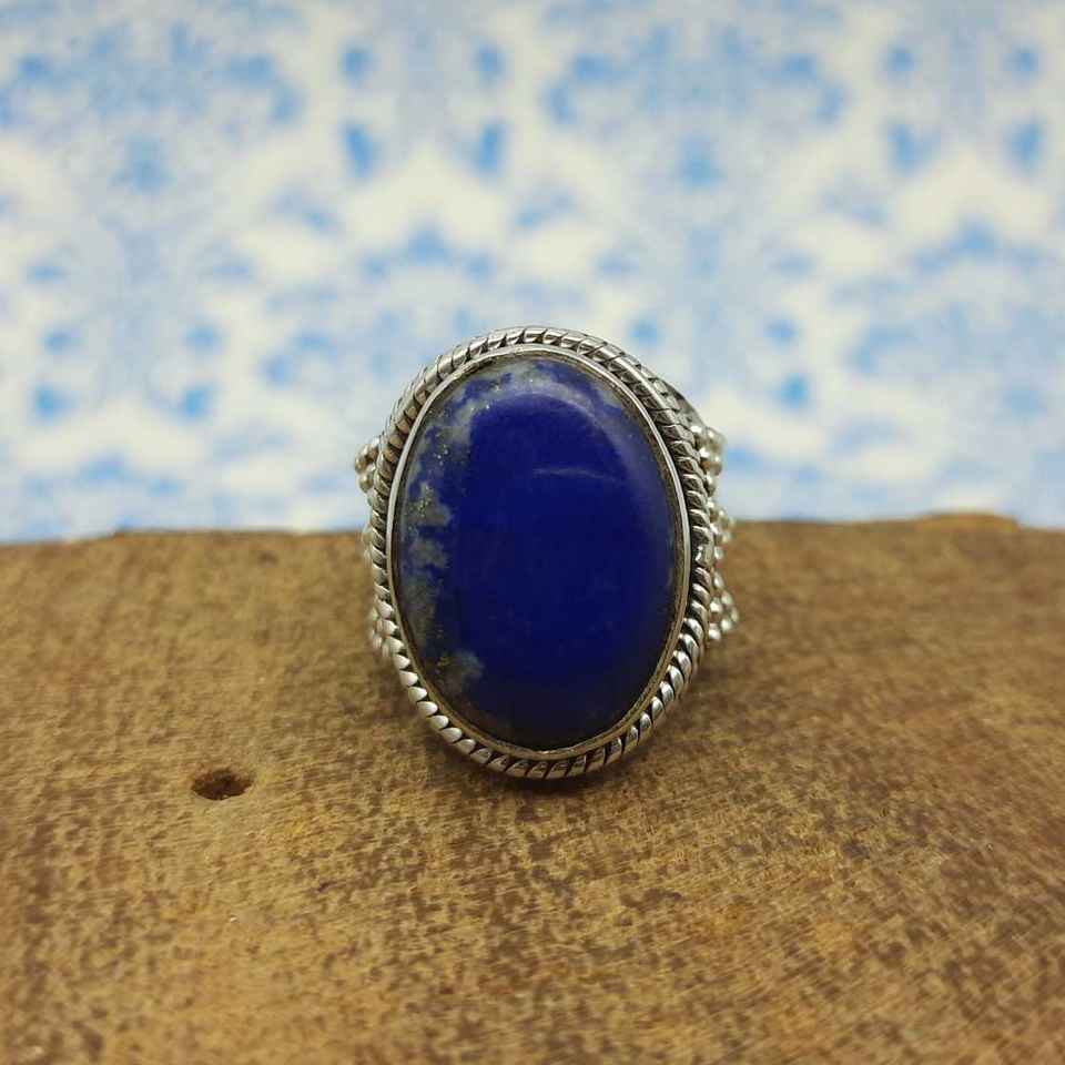 Artisan Designed 925 Sterling Silver Natural Gemstone Blue Lapis Ring Hot Design Perfect Wedding Gift for Women 14K Metal Purity