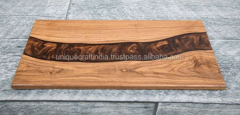 เขียงไม้ฟิวชั่นจากเรซินไม้มะม่วงงานปาร์ตี้ถาดเสิร์ฟหรูหราของตกแต่งบ้านเขียงหั่นแบบพรีเมียมสินค้าขายส่ง