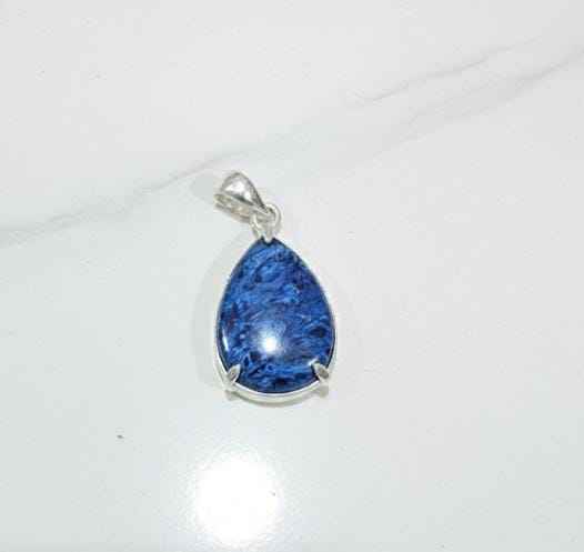 จี้หยดน้ำสีฟ้าพีเทอร์ไซต์งานฝีมือช่างฝีมือ พร้อมสร้อยเงินเยอรมันลายงู