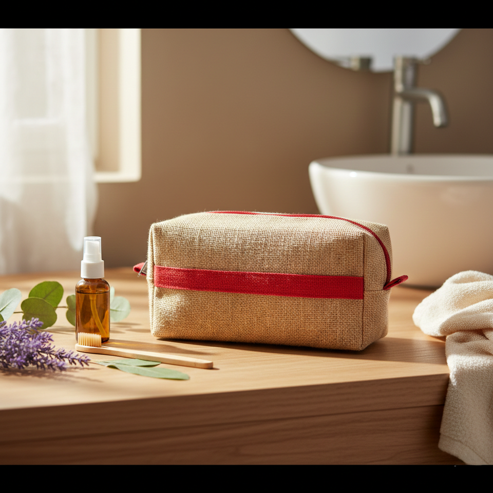 กระเป๋าใส่ของใช้ส่วนตัวทำมือจากผ้าปอกระเจา ทำจากเส้นใยธรรมชาติเพื่อการช้อปปิ้งอย่างยั่งยืน กระเป๋าใส่เครื่องสำอางแบบยั่งยืน