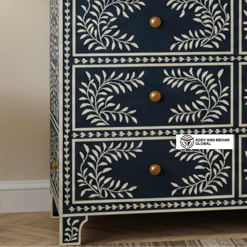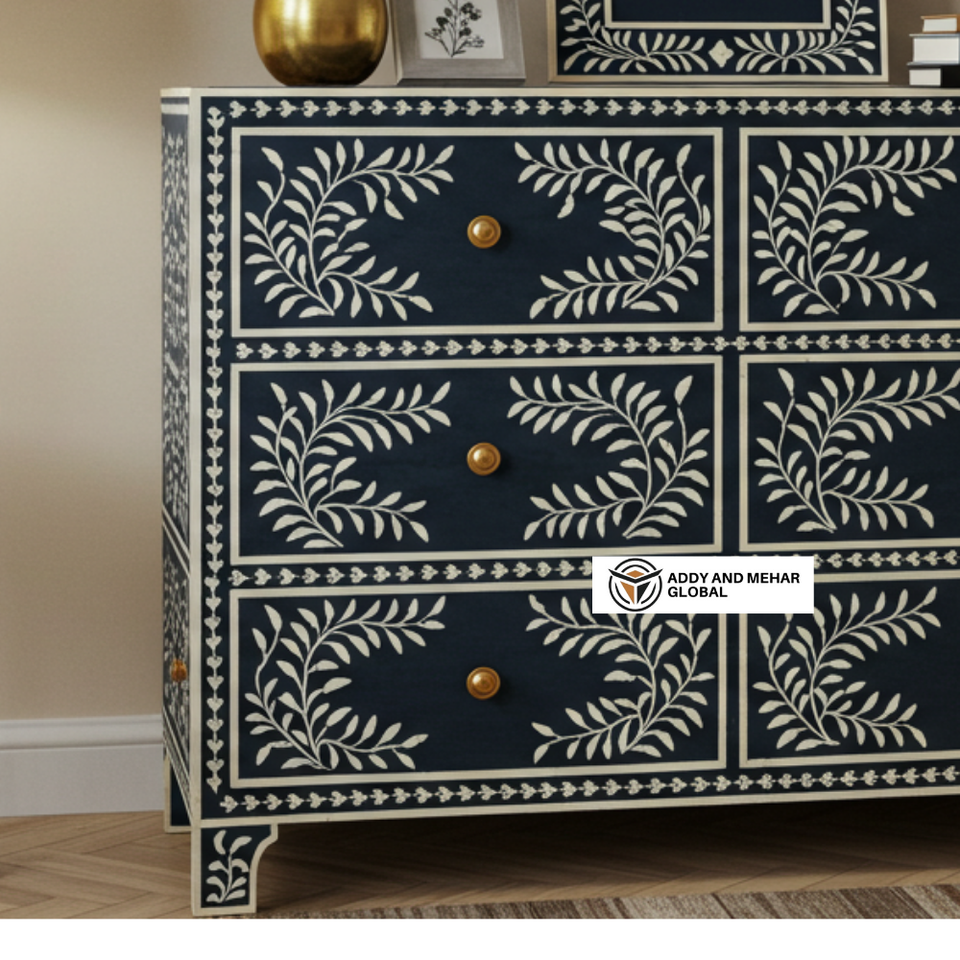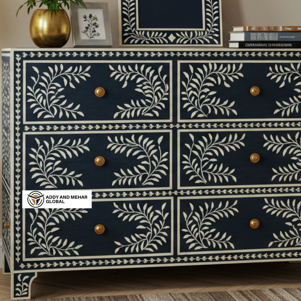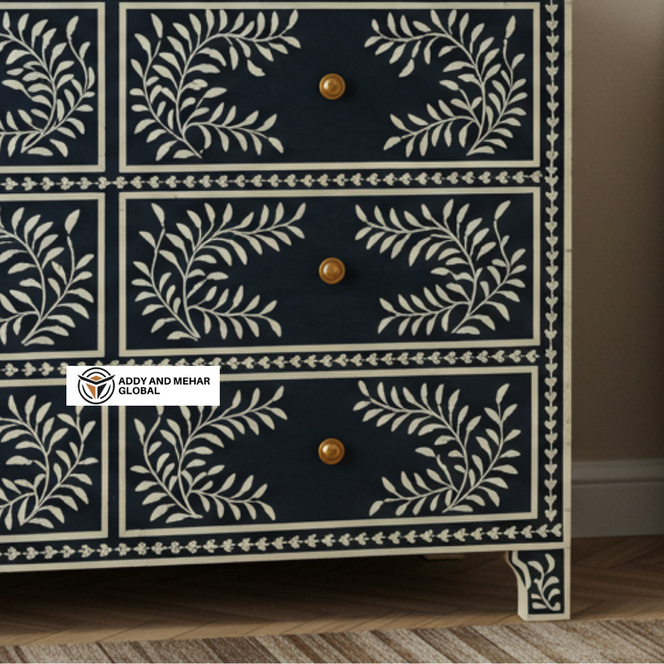 ตู้ลิ้นชัก 6 ชั้น ทำมือ งานฝีมือ ไม้มะม่วงแท้ ลายเรขาคณิต ตกแต่งด้วยกระดูกสีดำ ทันสมัย ทนทาน เป็นมิตรกับสิ่งแวดล้อม สำหรับห้องนั่งเล่น