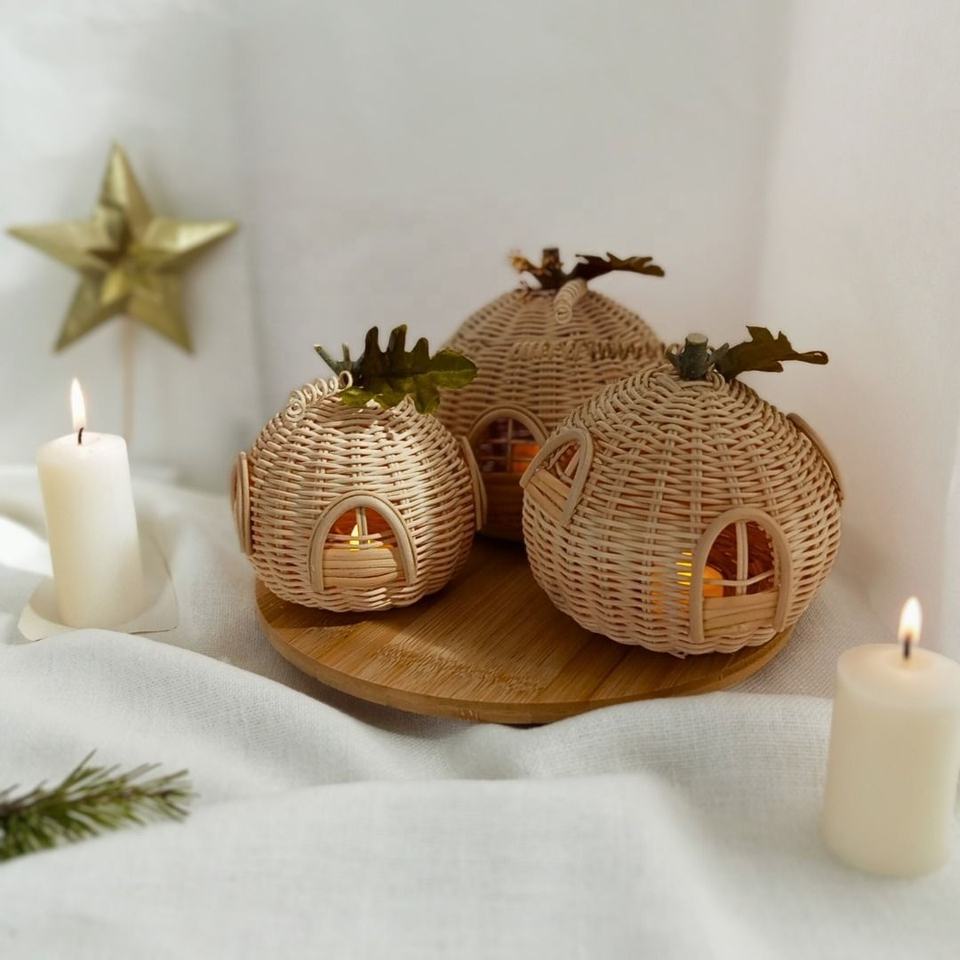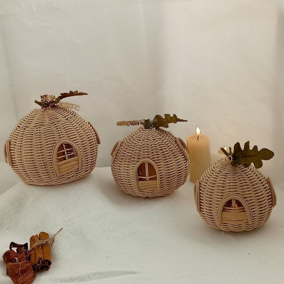 เชิงเทียนบ้านหวายทำมือ - โคมไฟบ้านนางฟ้าทอมือสุดเก๋ - ของตกแต่งห้องเด็กและเทศกาลที่เป็นมิตรกับสิ่งแวดล้อม
