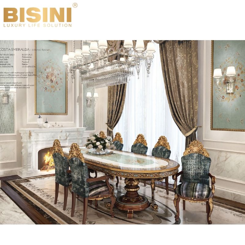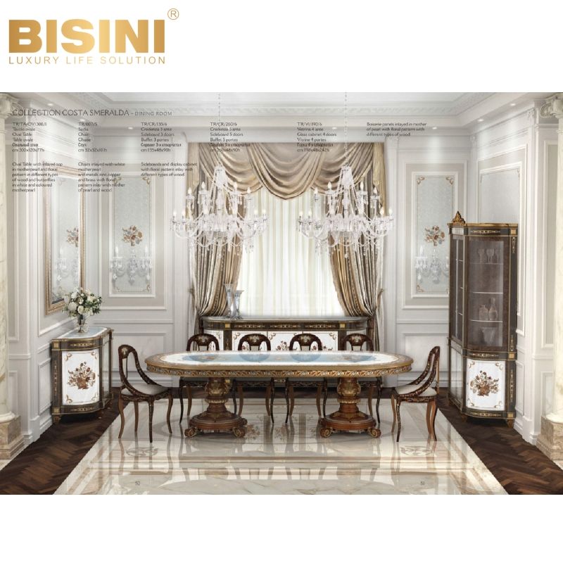 ชุดโต๊ะอาหารสไตล์อิตาเลียนทำมือ ประดับด้วยโมเสคเปลือกหอยลายดอกไม้และผีเสื้อ พร้อมเก้าอี้หุ้มเบาะอย่างดี
