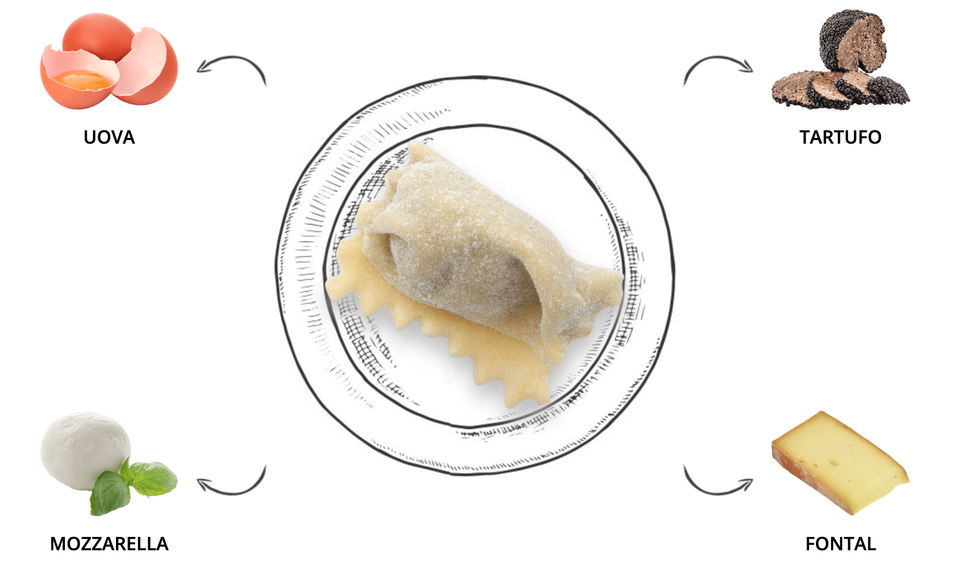 ส่วนผสมหลัก:พาสต้า, ชีส, ทรัฟเฟิล
