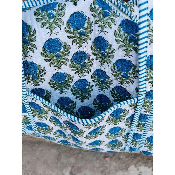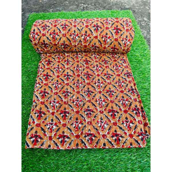 ผ้าห่มคันธาทำมือจากผ้าฝ้าย พร้อมลวดลายพิมพ์บล็อกที่มีเรื่องราวอันประณีตและสัมผัสนุ่มนวล ให้ความอบอุ่นและมีเอกลักษณ์