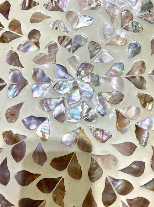 Artisan Made Rattan Tray Combined with Pearl Seashell and Mother of Pearl for Functional and Decorative Purposes