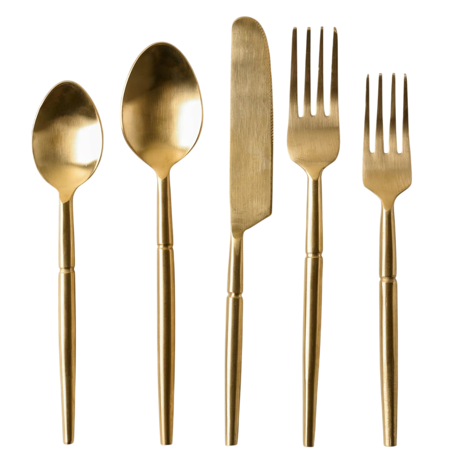 ชุดเครื่องครัวโลหะทำมือ 5 ชิ้น ชุดช้อนส้อมหรูหรา ผลิตด้วยมือ เป็นมิตรกับสิ่งแวดล้อม ชุดอุปกรณ์บนโต๊ะอาหารคุณภาพสูง สำหรับขาย