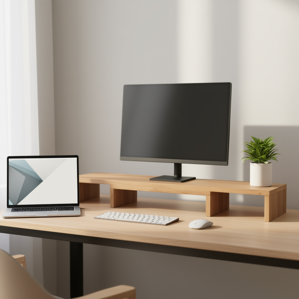 แท่นวางจอคอมพิวเตอร์ปรับระดับได้ Artisan Oak ขนาด 31.5x9.4x4.1 นิ้ว ทำจากไม้เอ็นจิเนียร์ สำหรับอุปกรณ์เสริมโต๊ะคอมพิวเตอร์