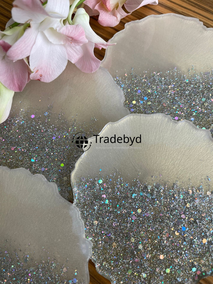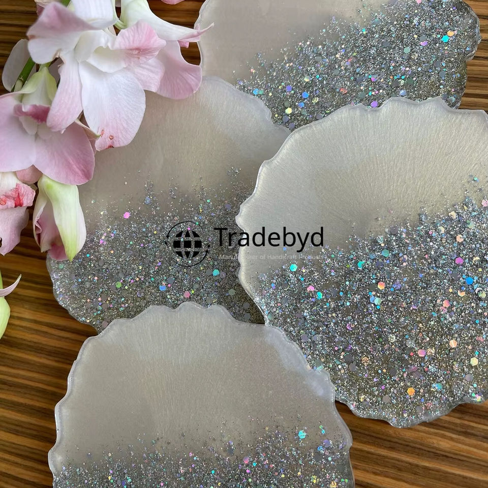 Artisan Resin Coasters 4X4 Inch Square Luxury Elegant Tabletop Drink Coaster Set with Customizable Logo Tradebyd