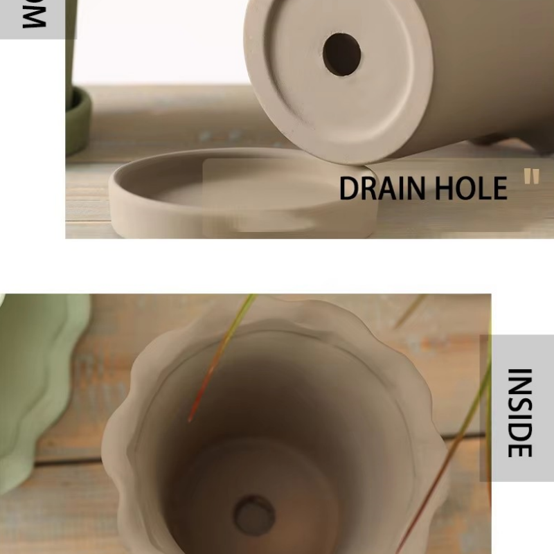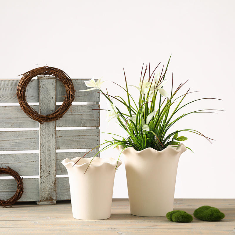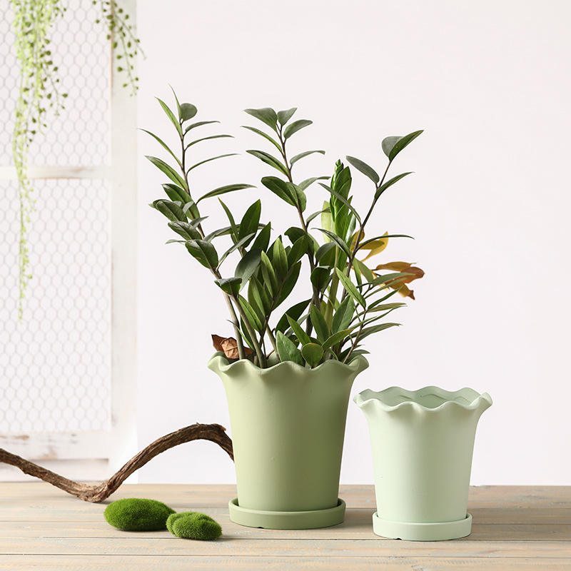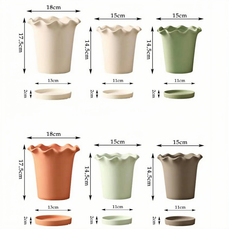 กระถางต้นไม้ดินเผาขนาดใหญ่สำหรับกลางแจ้ง ขอบหยัก ดีไซน์งานฝีมือ พร้อมถาดรอง รูระบายน้ำ เหมาะสำหรับบ้านและสวน