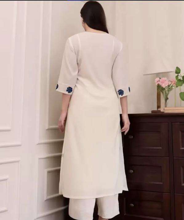 ชุดคุรตะผ้าฝ้ายปักลายฝีมือช่างฝีมือพร้อมกางเกงและผ้าคลุมไหล่ ชุดพื้นเมืองพรีเมียมสำหรับงานเฉลิมฉลองและชุดทำงานสุดหรู