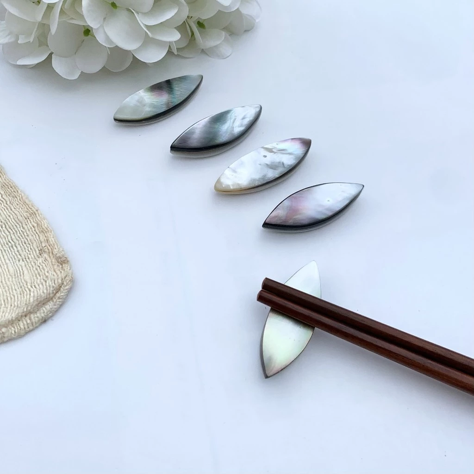 ที่วางตะเกียบทรงเปลือกหอยสีขาวของช่างฝีมือหอยทากและหอยมุกแบบฝังสำหรับกล่องของขวัญโต๊ะแต่งงาน