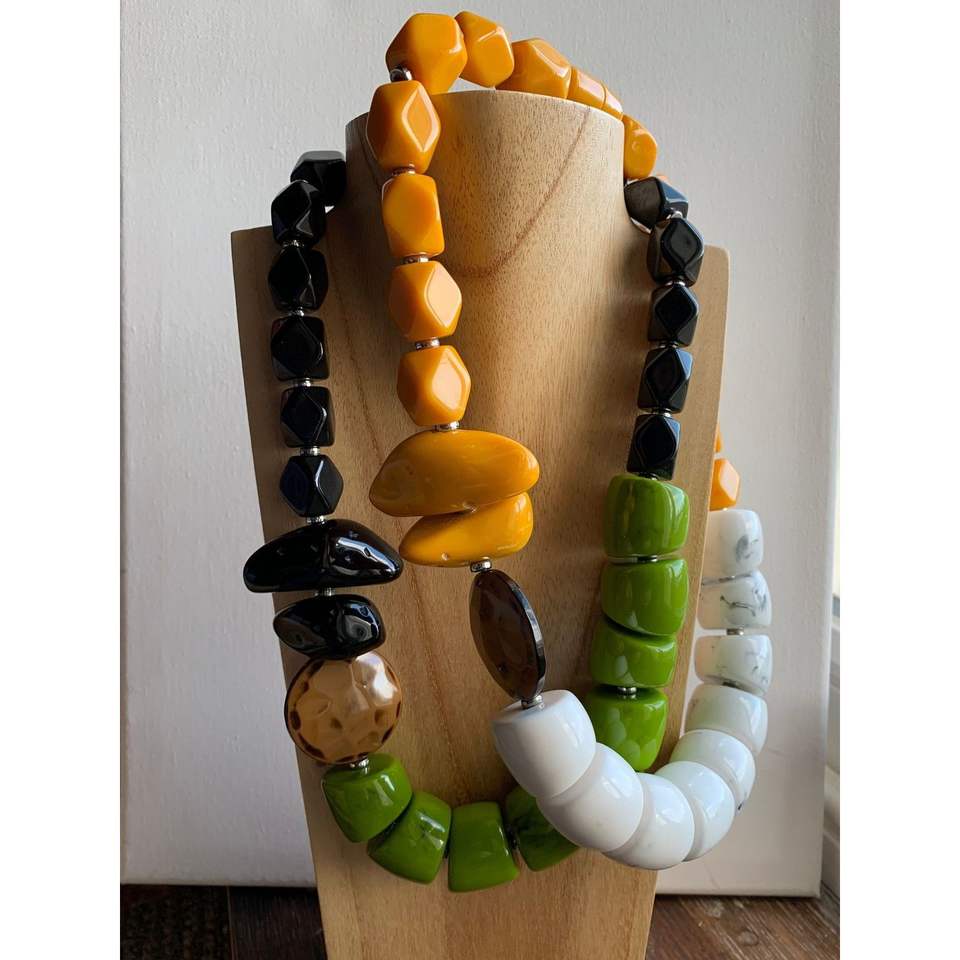 Artisan Wooden Necklace with Natural Wood Texture Resin Crystal Fashion Accessories