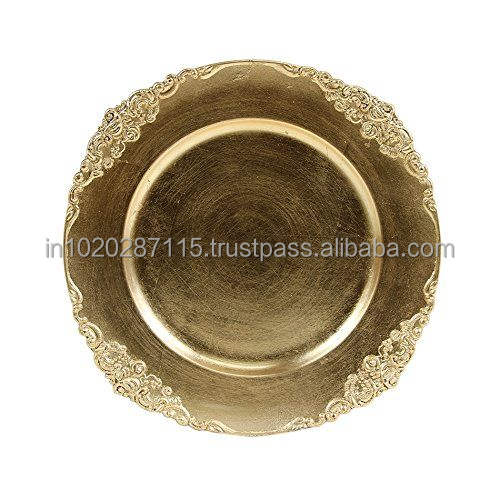 แท่นชาร์จโลหะทองแดงที่ทำจากช่างฝีมือสำหรับการรับประทานอาหารที่หรูหราของรีสอร์ทหรือการนำเสนออาหารงานแต่งงานปลายทาง