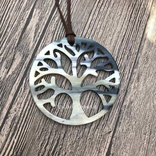 จี้วัฒนธรรมไวกิ้งรูปต้นไม้แห่งชีวิต ทำด้วยมือจากเขาควาย งานฝีมือแบบกำหนดเอง