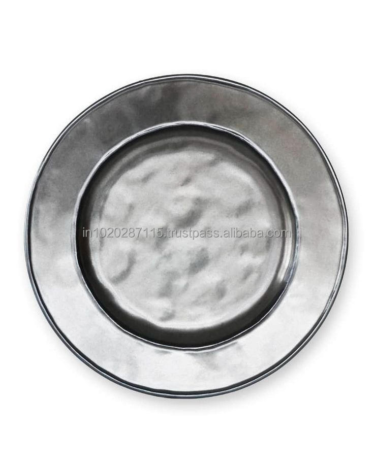 จานรองอาหารโลหะตีมือสำหรับงานแต่งงานหรืองานเลี้ยงธีมต่างๆ ให้ความรู้สึกหรูหราแบบเรียบง่าย