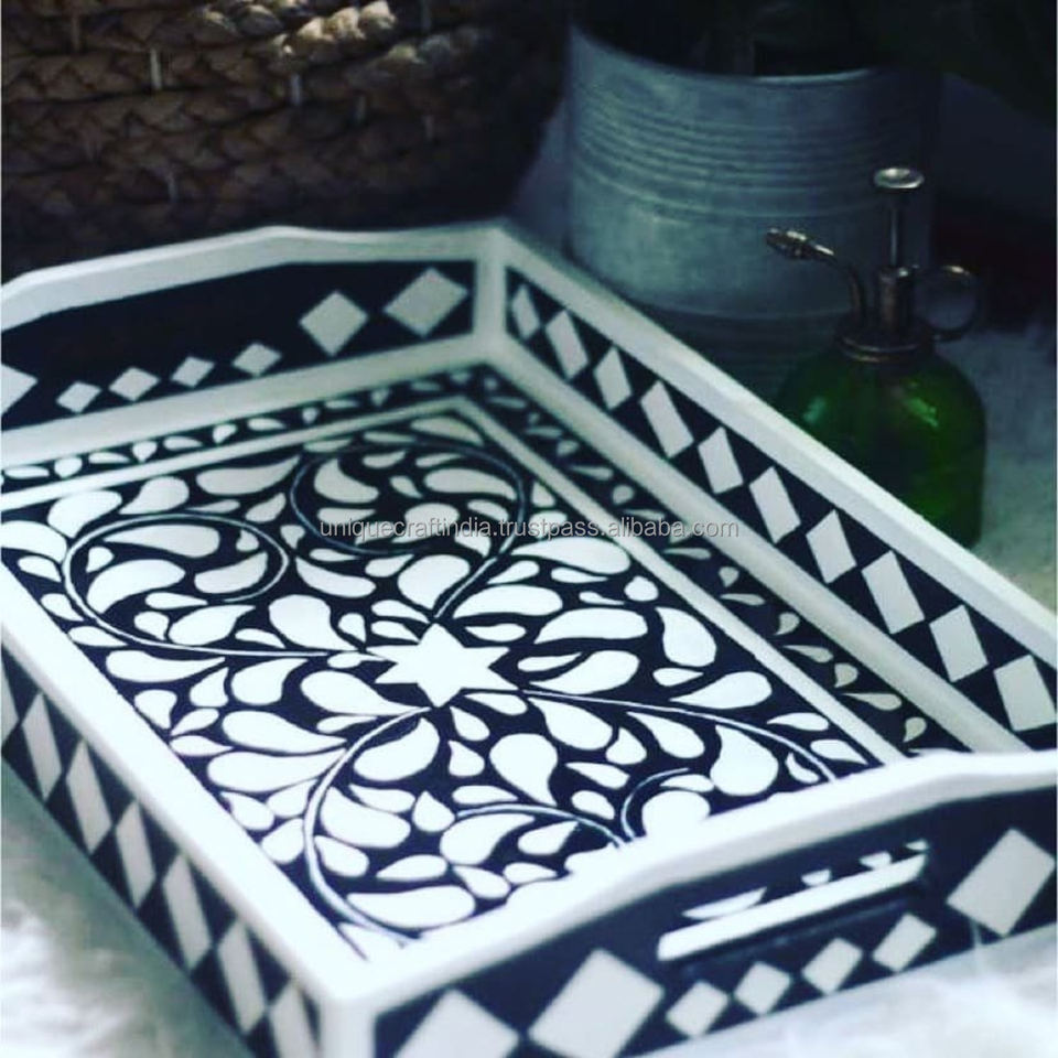 Artisancurve ถาดฝังกระดูก | ถาดสีดำและสีขาวรูปทรงลายดอกไม้สำหรับการให้บริการศิลปะการตกแต่งสไตล์โบโฮและการออกแบบโดยดีไซเนอร์