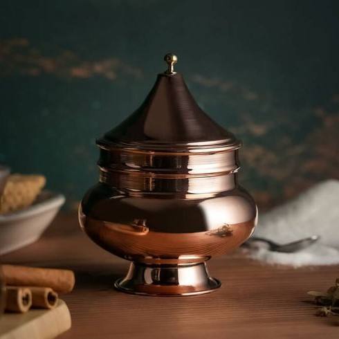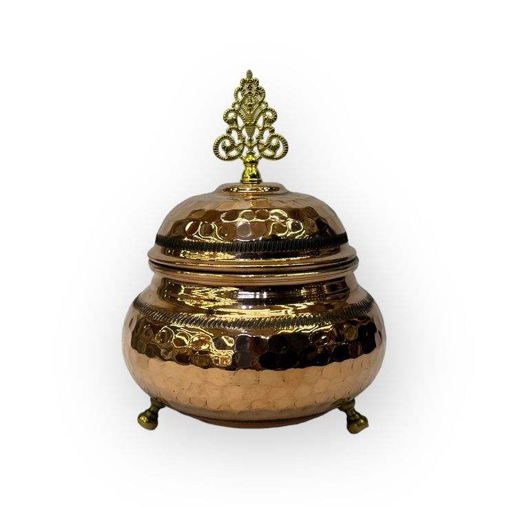 โถเก็บของทองแดงทำมือพร้อมฝาปิด ลายดอกไม้แบบมีนาคารี งานฝีมือประดับตกแต่ง ของขวัญ ภาชนะตกแต่งบ้าน
