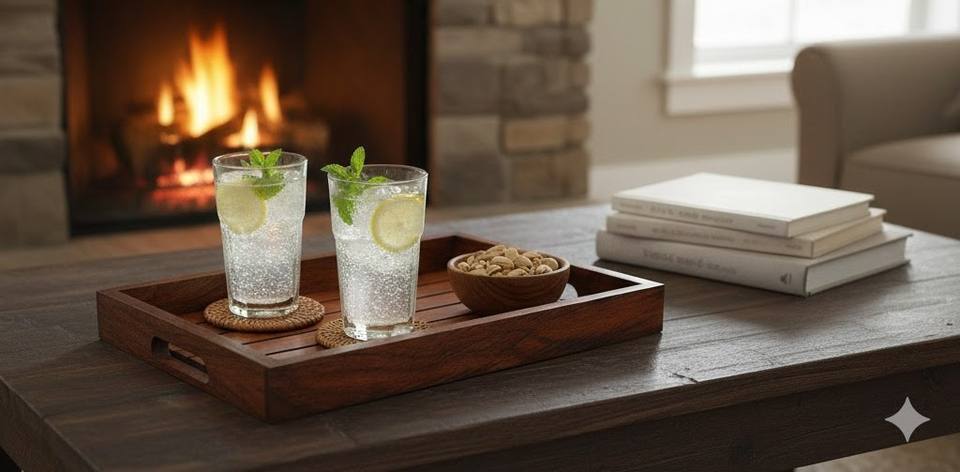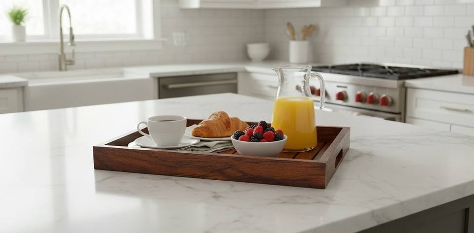 ถาดเสิร์ฟอาหารทำมือจากไม้มะม่วงเคลือบเงาป้องกัน ดีไซน์ทันสมัย ใช้กับเครื่องล้างจานได้
