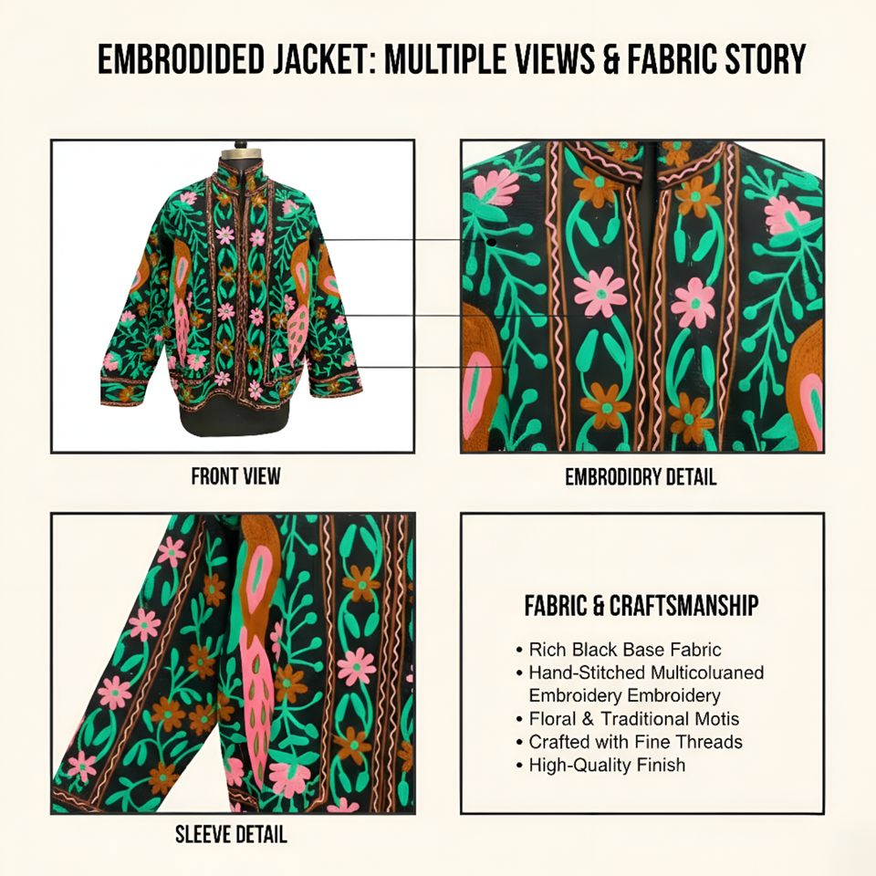 เสื้อแจ็คเก็ตปักลายนกยูง ทำด้วยมือ, เสื้อโค้ทผู้หญิง เสื้อคลุม เสื้อแจ็คเก็ตผู้หญิง