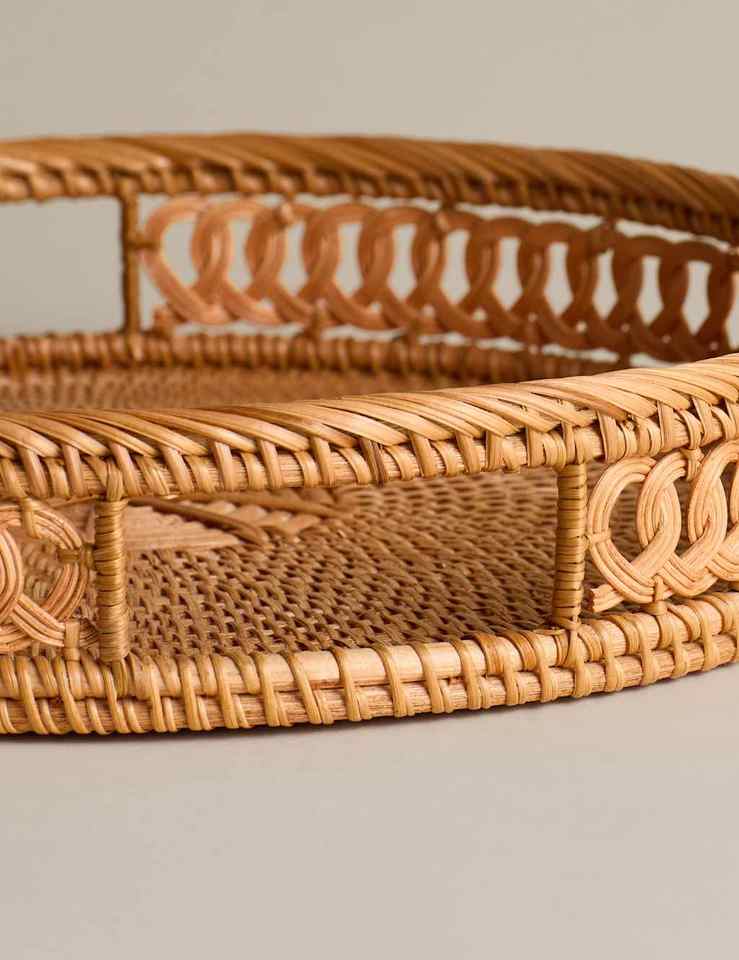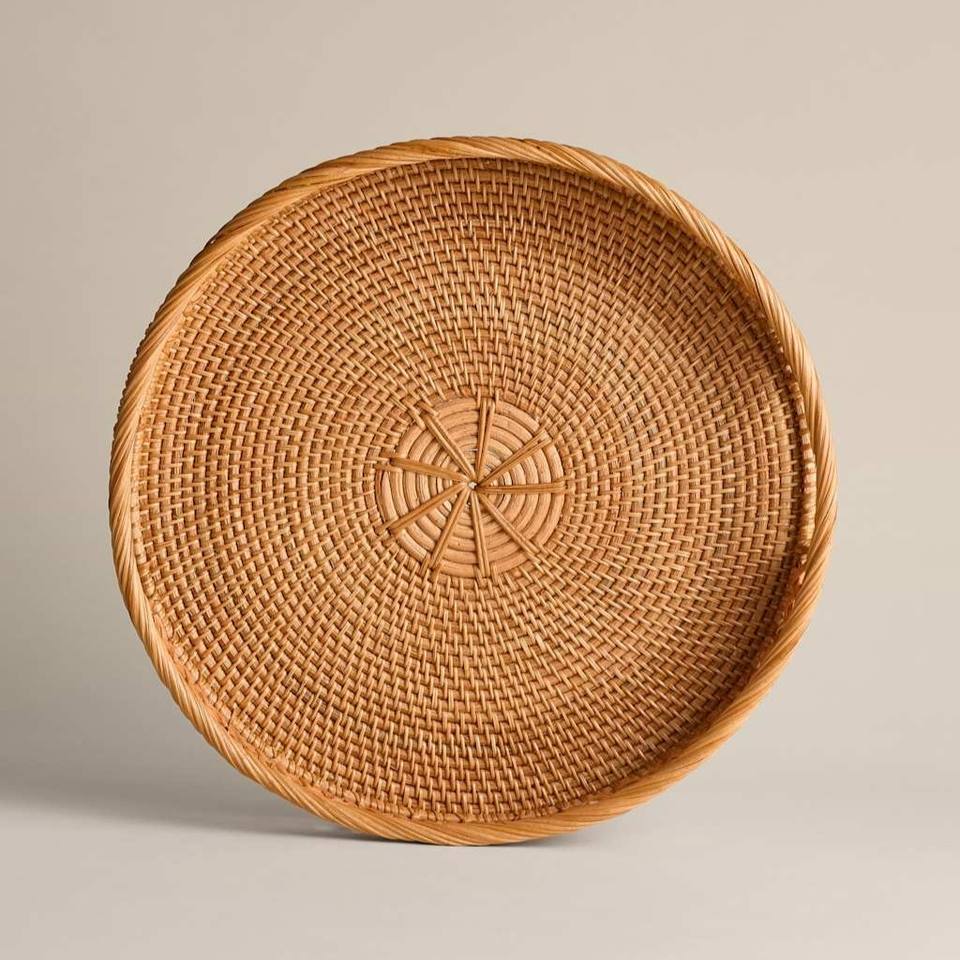 ถาดเสิร์ฟทรงกลมหวายแท้ งานฝีมือ ถาดจัดแสดงหวายธรรมชาติ ดีไซน์หรูหรา ตกแต่งโต๊ะอาหาร