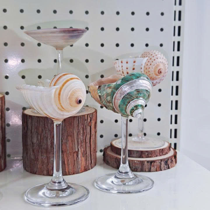 แก้วเปลือกหอยทำมือสำหรับน้ำอัดลมและน้ำผลไม้ เหมาะสำหรับร้านขายของขวัญสุดหรูและสไตล์การออกแบบตกแต่งภายในแนวชายฝั่ง